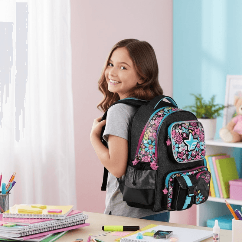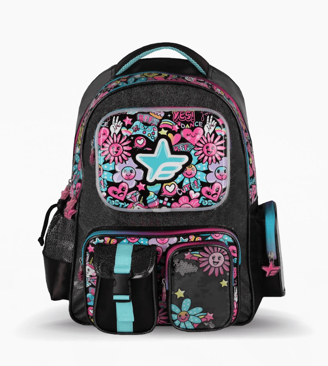 3 compartimentos con cierre, ideal para uso diario Llavero de regalo Tiras reforzadas Manija de agarre 2 Bolsillos laterales para botella MEDIDAS APROXIMADAS Ancho: 34 cm Alto: 45 cm Profundidad: 20 cm