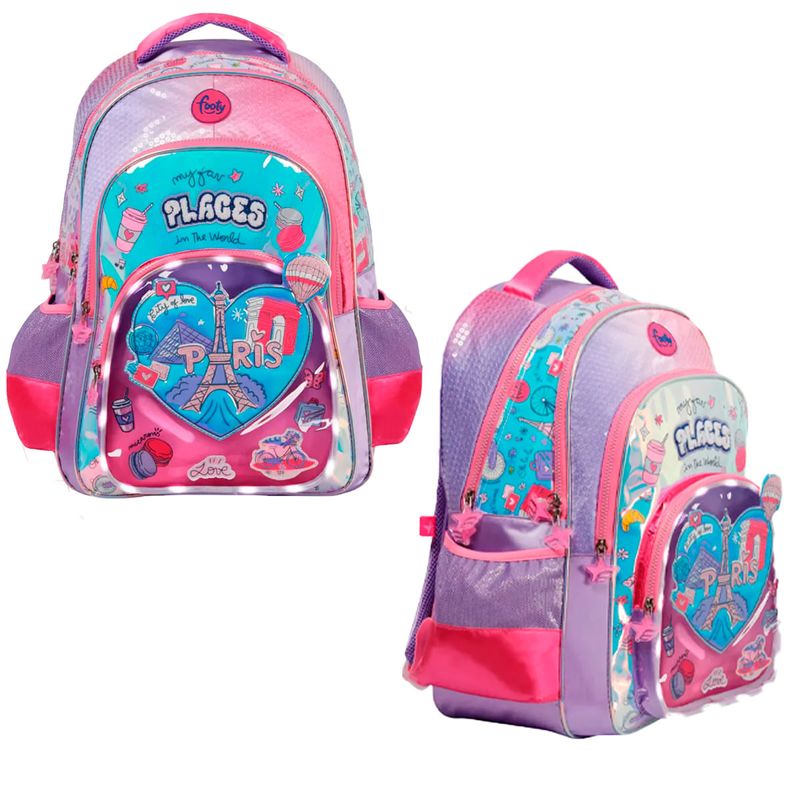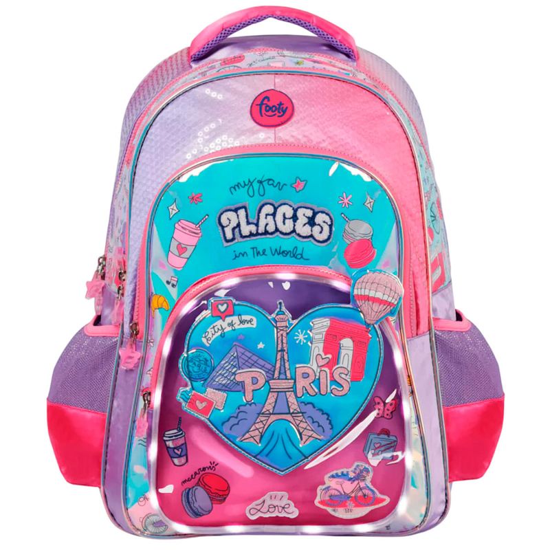 Mochila Espalda 18 Footy I Love Paris con Luz LED – Color Lila