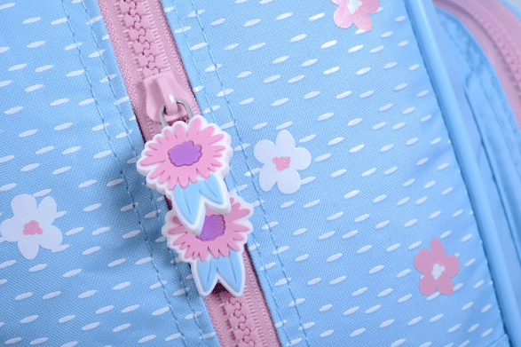 Posee 2 bolsillos laterales con cierre. Los cierres tienen llaveros super lindos!