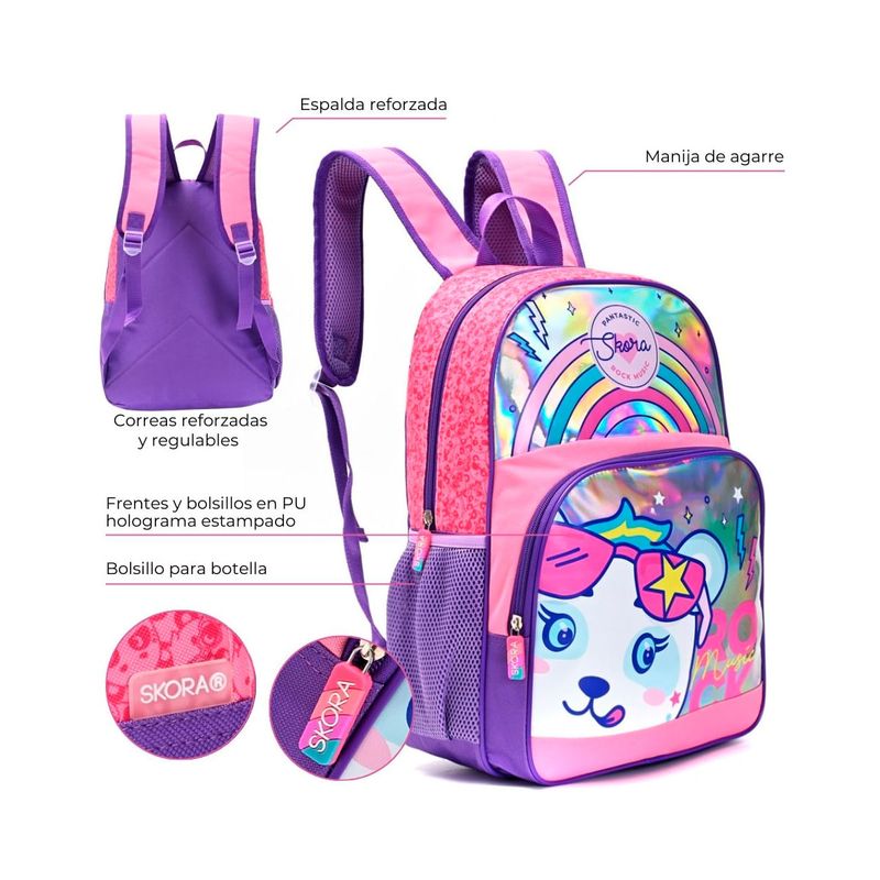 La Mochila Skora "Pets Pantastic" de 16 pulgadas es la compañera ideal para quienes buscan un accesorio práctico, funcional y lleno de estilo. Con un diseño encantador y una capacidad de 14,4 litros, es perfecta para acompañar el día a día escolar o actividades recreativas. Además, incluye un adorable llavero que le añade un toque especial.