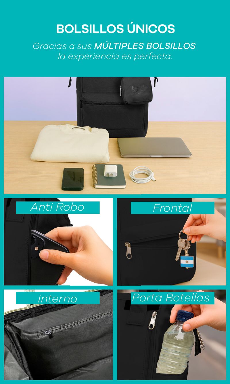 -Bolsillos organizadores internos.