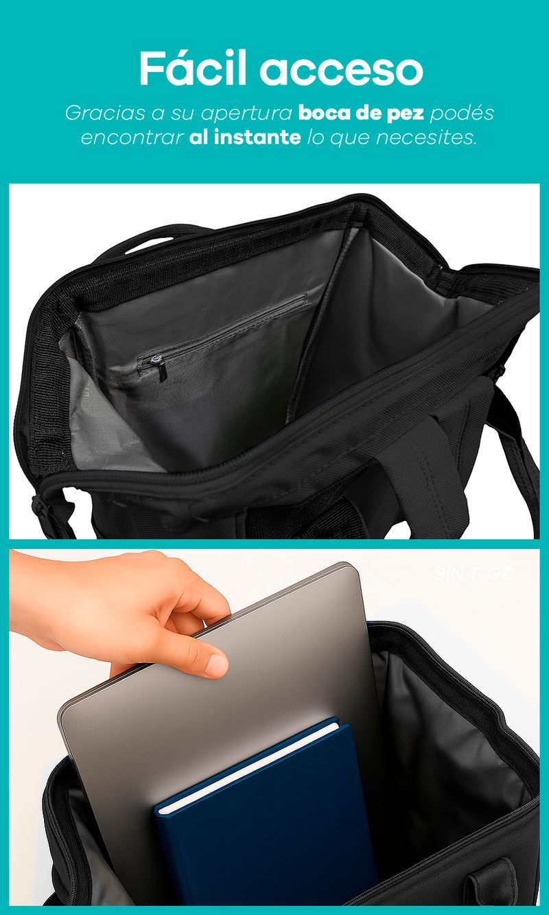 -Apertura boca de pez con doble cierre para un rápido acceso a tus cosas.
