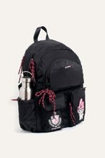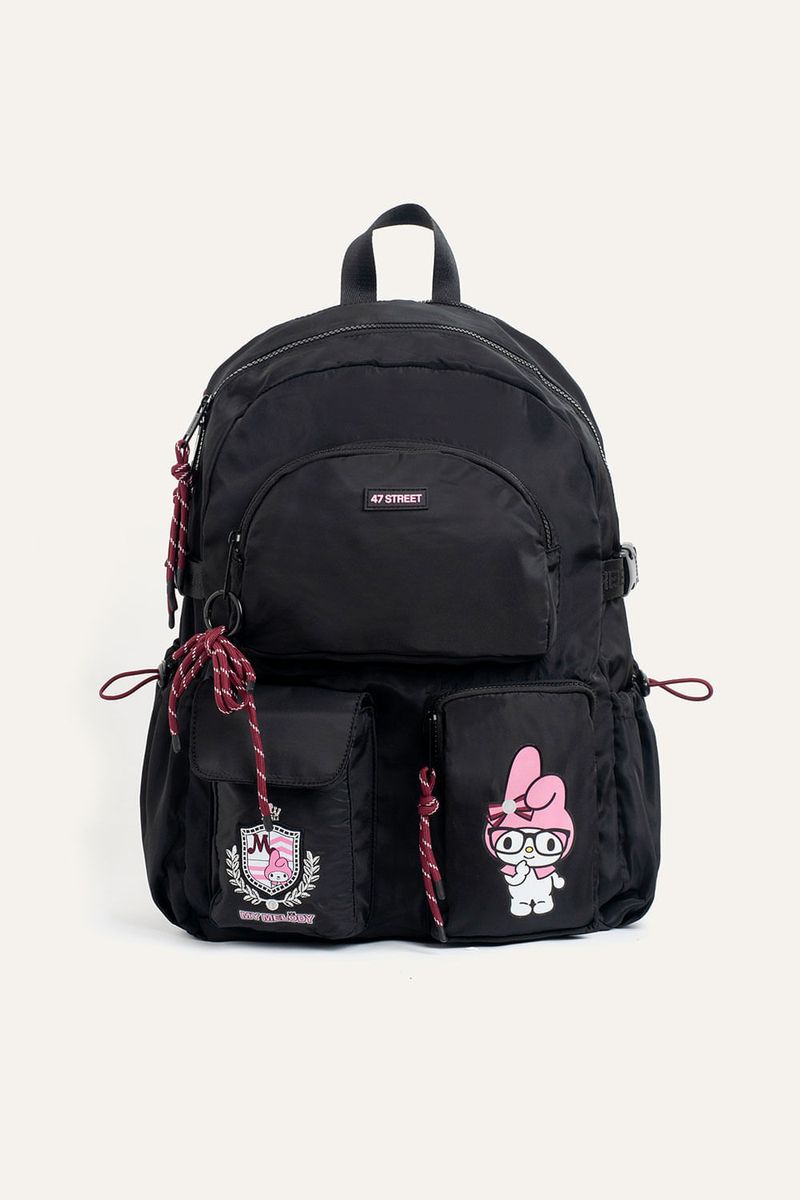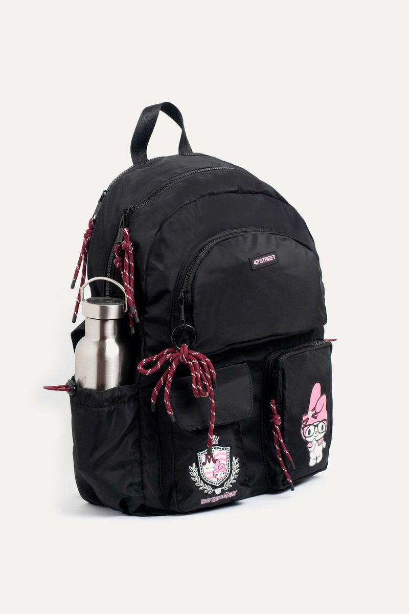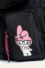 Mochila de 18” con estampa y bordado de My Melody, ideal para un uso cómodo y organizado. Cuenta con amplio compartimento principal, tres bolsillos delanteros y dos bolsillos laterales para botella. El compartimento principal incluye bolsillo para laptop y organizador interno. Suma bolsillo trasero para objetos de valor, tira para enganchar a valija y tiras regulables acolchadas para un ajuste anatómico. Incluye llavero extraíble de moño hecho con cordones. Confeccionada en nylon, material repelente al agua y de fácil limpieza. Producto con licencia oficial de Sanrio.
