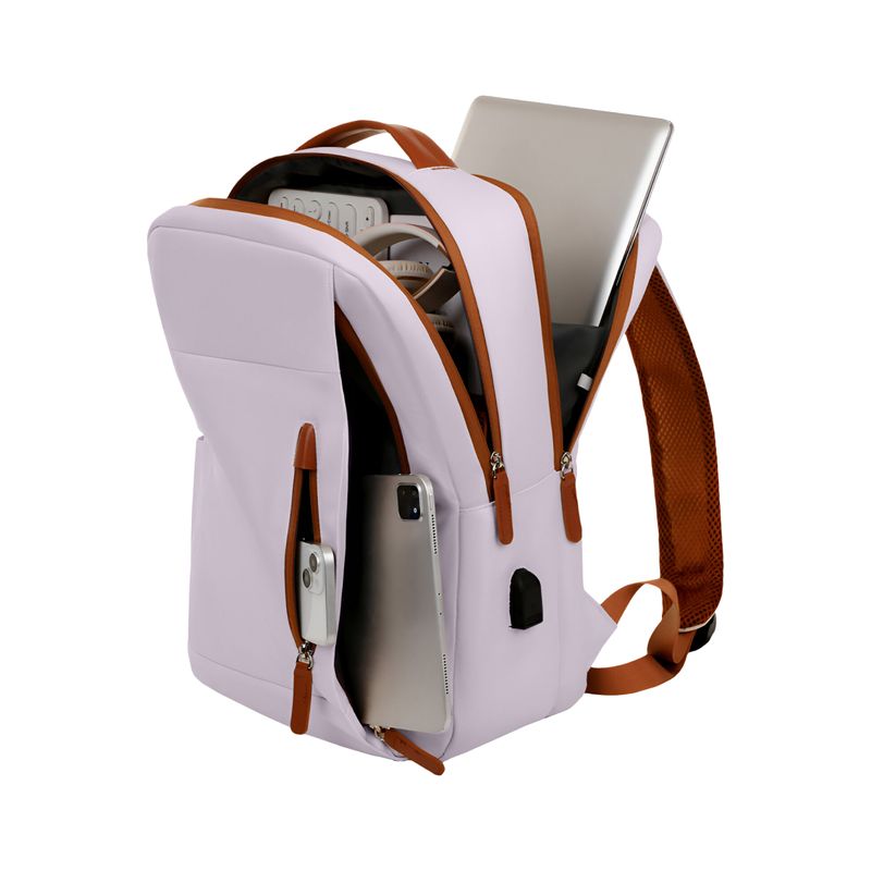 Estética mochila ejecutiva con un diseño ideal para transportar tus dispositivos de forma segura. Incluye una tira para enganchar a la valija, que la hace ideal para tus viajes mientras trabajás remoto. Además, cuenta con múltiples bolsillos organizadores y puerto USB.