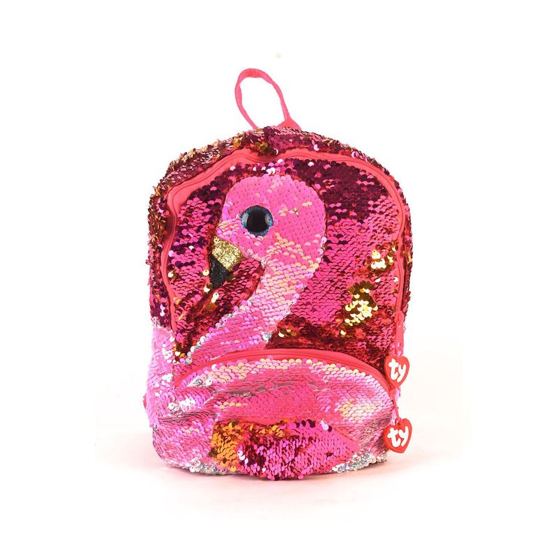 Llevá diversión, estilo y funcionalidad a todas partes con esta mochila original Ty con diseño de flamenco y lentejuelas reversibles-.