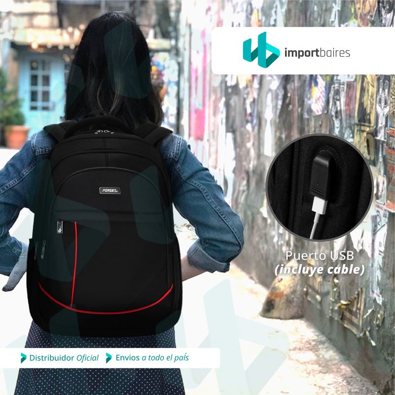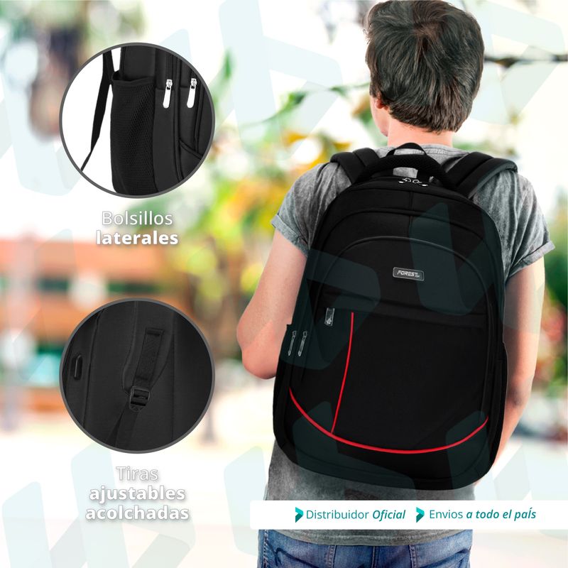 MOCHILA FOREST RIDE PORTANOTEBOOK CON 3 BOLSILLOS + PUERTO USB