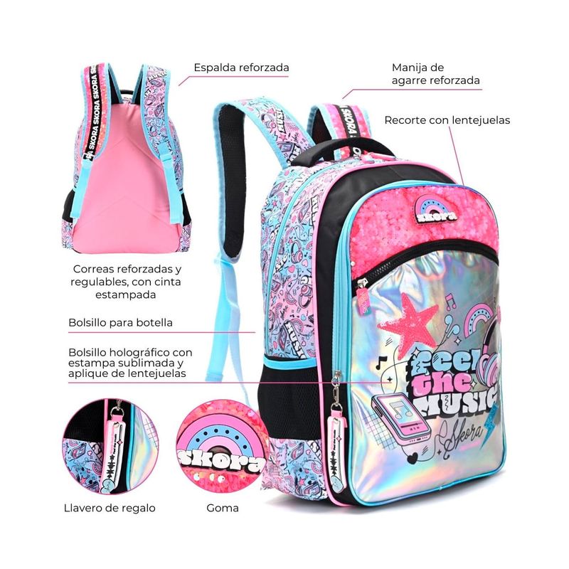 •Estilo juvenil y práctico para acompañarte en la escuela o actividades cotidianas.
