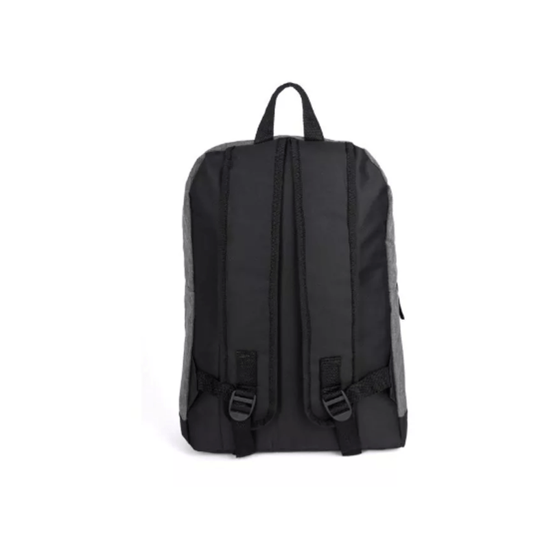 Mochila con amplio compartimiento principal, correas ajustables, doble deslizador, divisor acolchado para notebook. Bolsillo frontal con cierre diagonal. Espalda acolchada. Medidas: 43 x 30 x 10 cm