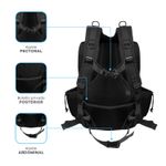 -Espaldar acolchado con tela antitranspirante reforzada en hombro y cintura.