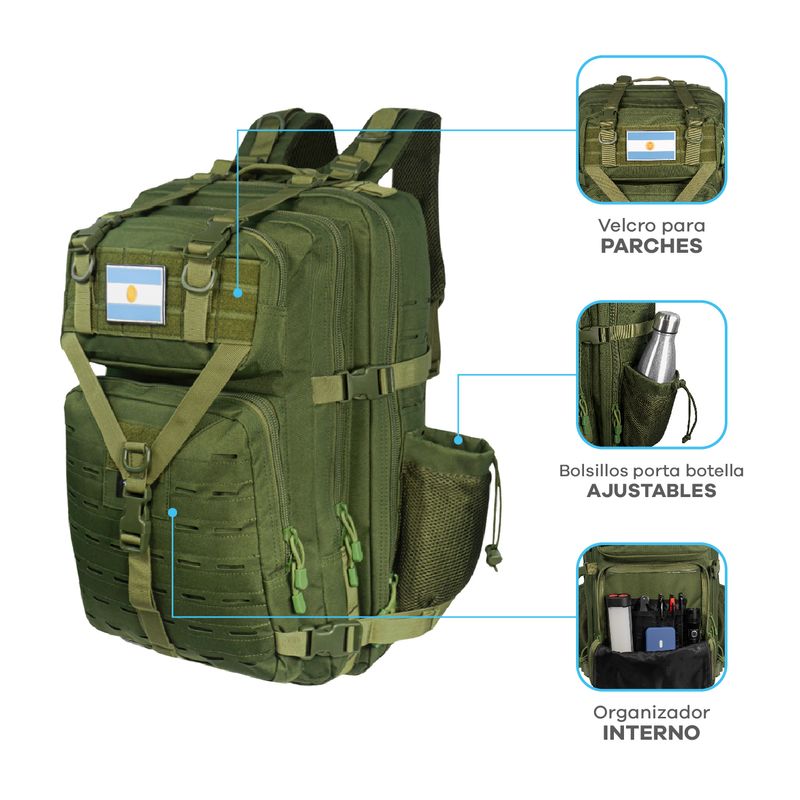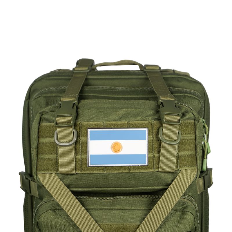 -Sistema de velcro frontal para parche, incluye uno con la bandera Argentina.