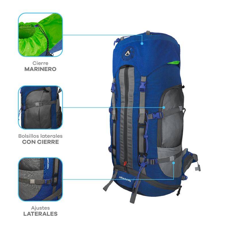 MOCHILA DE TREKKING ACTIVE JOURNEY 70 + 5 LITROS CON SISTEMA EASY FIT, DOBLE APERTURA Y COBERTOR DE LLUVIA