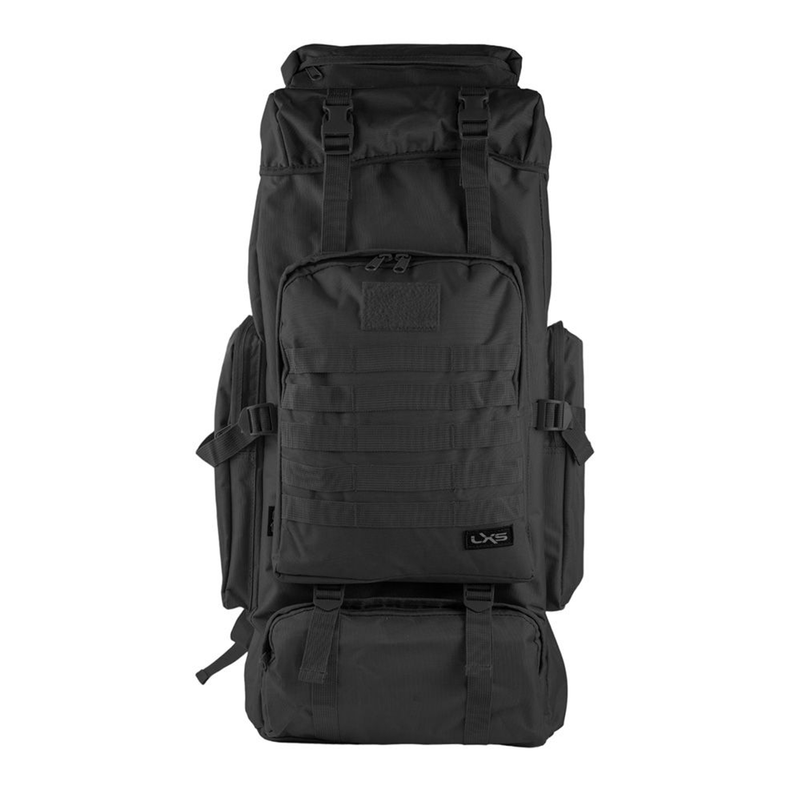 •Compartimiento principal con correa de ajuste y tapa superior con bolsillo con cierre y clips de sujeción