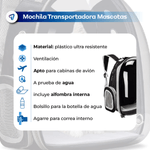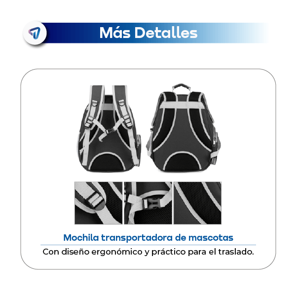 La Mochila Transportadora para Mascotas Waggs TMAS01 es perfecta para trasladar perros y gatos pequeños de manera segura y cómoda. Diseñada con múltiples orificios de ventilación distribuidos en la parte frontal, laterales y posterior, asegura una circulación de aire óptima para el bienestar de tu mascota. Su frente transparente ofrece una vista clara del entorno, ayudando a reducir el estrés del animal durante el transporte. Con capacidad para soportar hasta 6,5 kg, está fabricada con tela impermeable y plástico resistente. Además, cuenta con cierres reforzados que garantizan seguridad y durabilidad, lo que la convierte en una opción confiable para viajes y paseos con tu mascota.