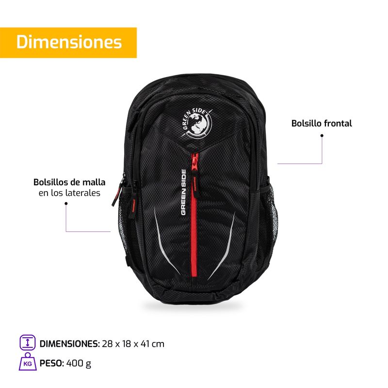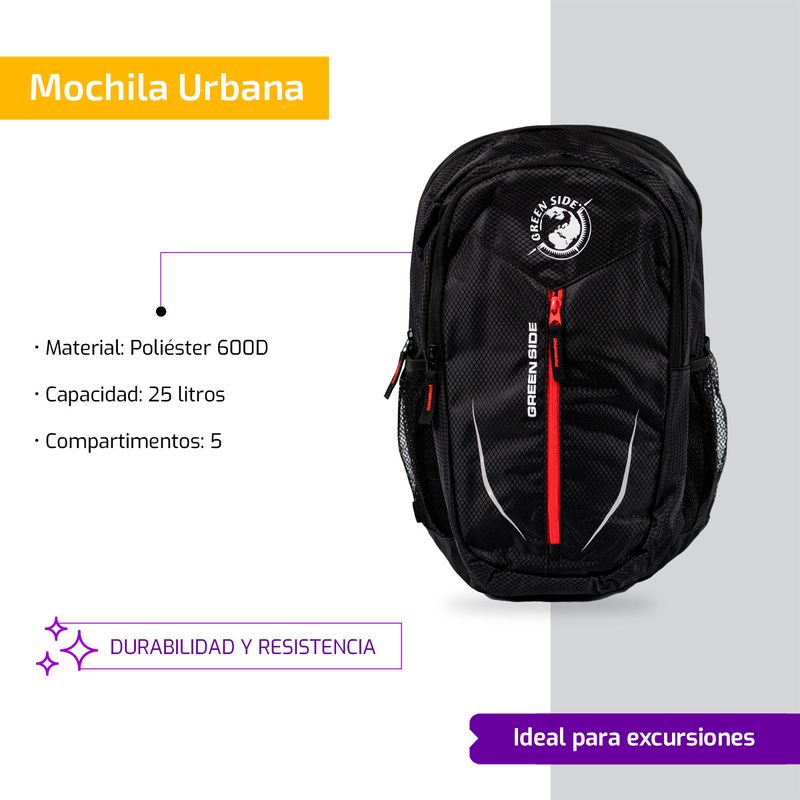 Llevá todo lo que necesitas tu día a día en esta mochila urbana de 25 litros. Fabricada en poliéster 600D, ofrece durabilidad y resistencia. Cuenta con múltiples compartimentos, incluyendo un bolsillo frontal con cierre, dos bolsillos de malla en los laterales y compartimentos internos, proporcionando una excelente organización para tus pertenencias.