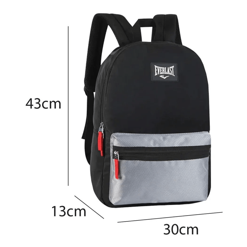 Mochila Everlast, 100% Poliéster, contiene un bolsillo frontal con cierre y un compartimiento principal forrado en su parte posterior interna. Las tiras y la espalda de la mochila son acolchadas. Original e importada Everlast. Medidas: 43x30x13 cm Material: 100% Poliéster