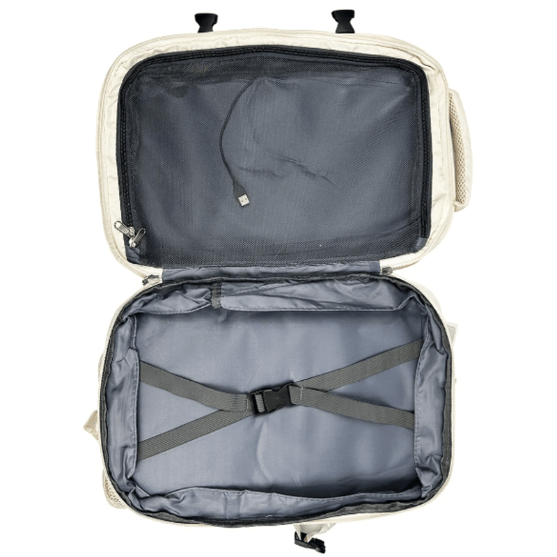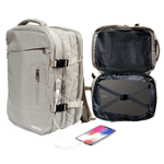 Mochila de viaje Carry On Diseño de la tela: Liso. Capacidad de la mochila: 24 L. Cuenta con compartimento para notebook. Con cremallera. Es impermeable. Tiene 6 bolsillos Llevá lo que necesitás de manera cómoda y segura. Con correa de Pecho. Altura x Ancho x Profundidad 43 cm x 31 cm x 22 cm. Peso 1,5 kg. Materiales Nailon, PVC. Es a prueba de agua. Es reforzada. Posee Con compartimento para notebook y Con puerto USB