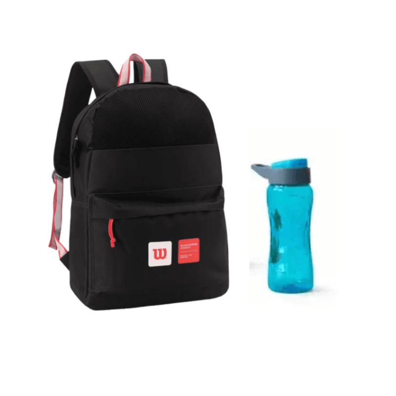 Este práctico combo es ideal para el día a día, combinando funcionalidad, diseño y comodidad. Incluye una mochila Wilson urbana reforzada, perfecta para oficina, trabajo o universidad, con amplio espacio interior, compartimento para notebook y un diseño resistente pensado para el uso diario. La mochila se encuentra disponible en colores negro, azul y rojo, los cuales se entregan según disponibilidad, sin elección de color. El set se completa con una botella plástica reutilizable, liviana y cómoda para transportar, ideal para mantenerte hidratado en cualquier momento del día. La botella está disponible en colores verde, azul, entre otros, también sujetos a disponibilidad y sin posibilidad de elección. Un combo versátil y funcional, ideal para estudio, trabajo o actividades diarias.