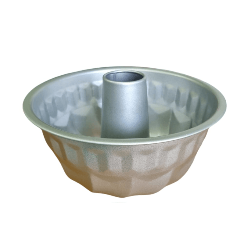 La budinera con tubo central favorece una cocción pareja y un desmolde prolijo, ideal para budines, flanes, tortas húmedas, roscas y preparaciones saladas.