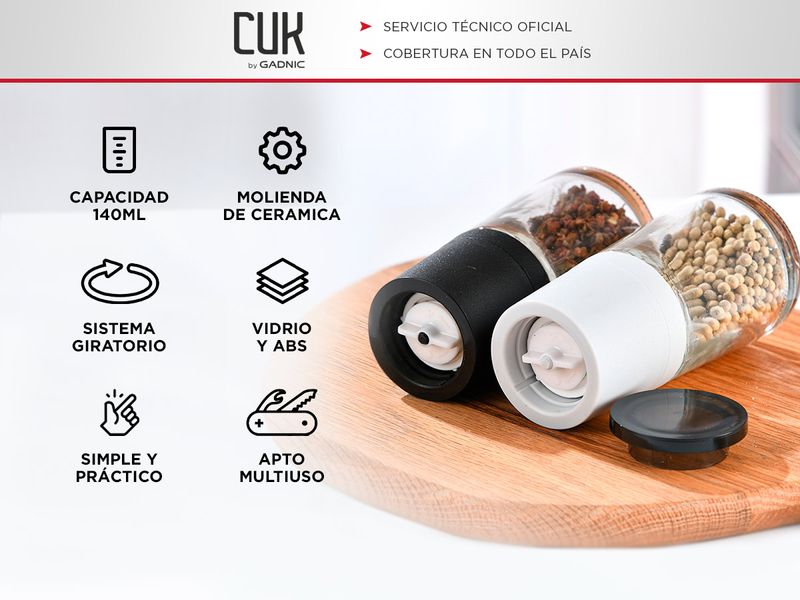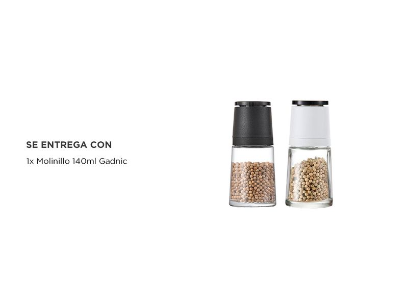 Con un tamaño compacto y una capacidad generosa de 140 ml, este molinillo está diseñado para combinar funcionalidad y estilo. Su núcleo de molienda de cerámica garantiza una durabilidad excepcional y un rendimiento superior, permitiéndote ajustar la molienda para obtener la textura perfecta en cada plato. Ideal para chefs aficionados y profesionales, este molinillo de pimienta es la herramienta imprescindible para realzar el sabor de tus comidas favoritas con el toque fresco y aromático de la pimienta recién molida.