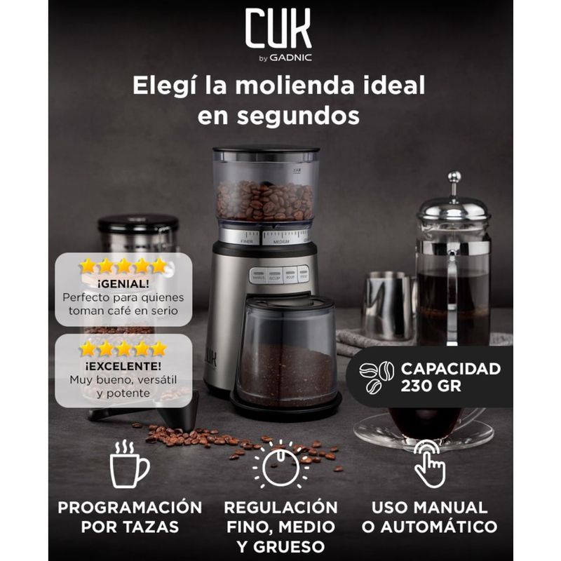 Capacidad de Tolva: Hasta 230 g