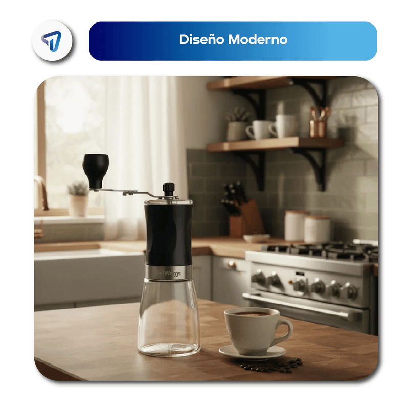 El Molinillo de Café Manual WAGGS con muela de cerámica ofrece una molienda uniforme y ajustable para todo tipo de preparaciones, desde café hasta especias y semillas. Su diseño compacto, elegante y resistente combina cuerpo de acero inoxidable con base de vidrio, garantizando durabilidad y estilo en cualquier cocina. Fácil de usar y limpiar, solo requiere colocar los granos, ajustar la molienda y girar la manivela desmontable para obtener café fresco en segundos. Incluye recipiente de almacenamiento y es ideal tanto para el hogar como para llevar de viaje, convirtiéndose en el aliado perfecto para los amantes del café.