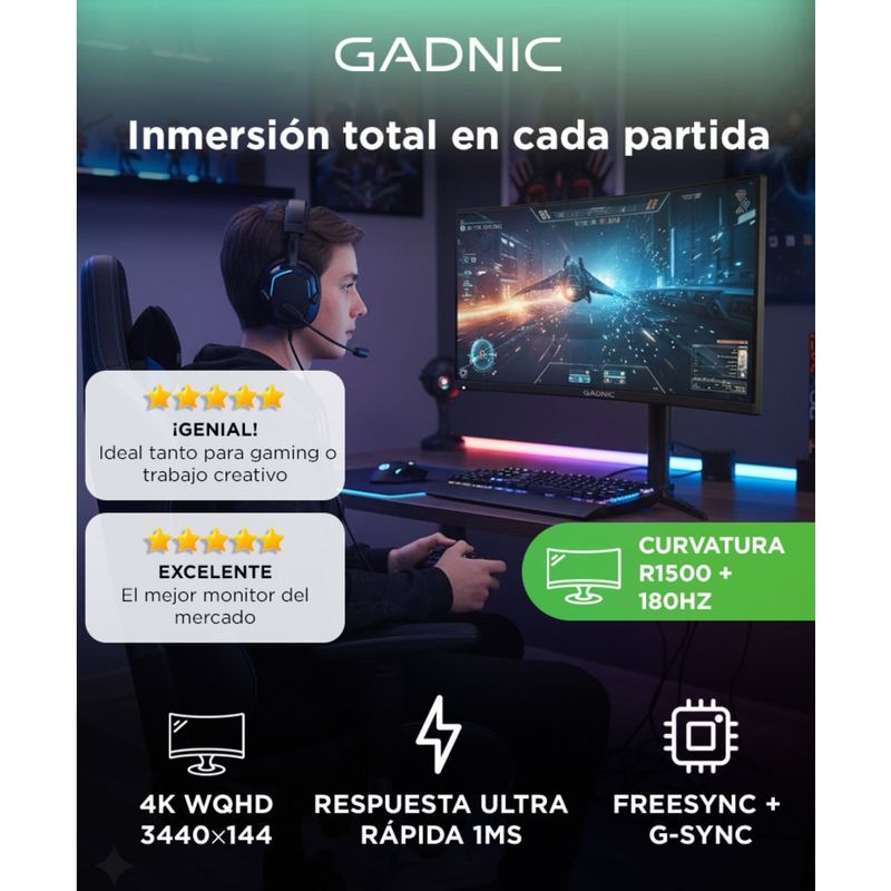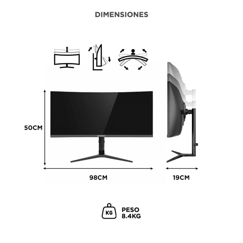 Base ajustable, retroiluminación RGB y puertos HDMI/DP para máxima versatilidad.