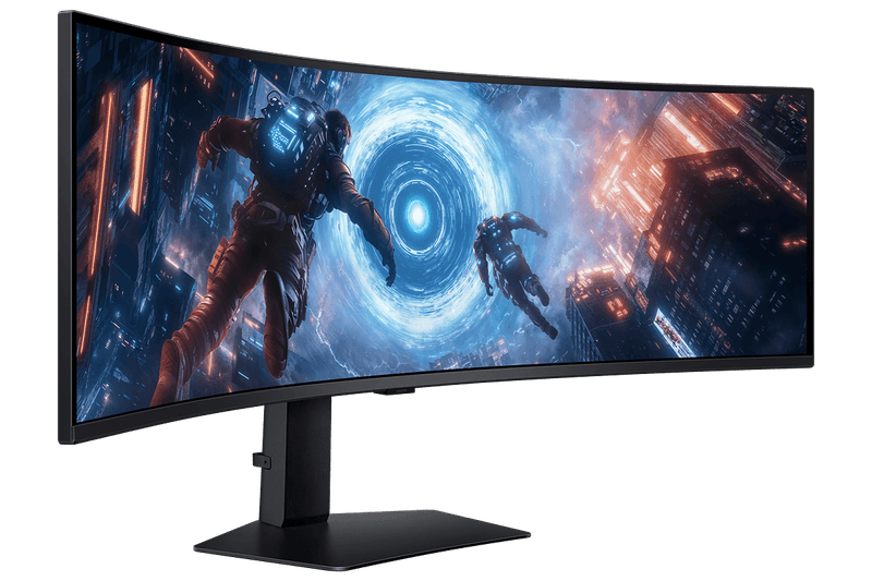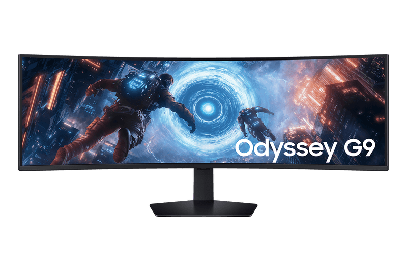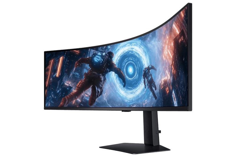 Con un elegante acabado negro total y soporte compatible con montaje en pared, el Samsung Odyssey G9 combina potencia, estilo y funcionalidad, ideal para gamers que buscan rendimiento y estética en un solo monitor.
