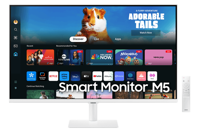 El Samsung M5 32" es más que un monitor: es un Smart TV 32 pulgadas Samsung completo con sistema operativo Tizen™, acceso a SmartThings, TV Plus, experiencia multidispositivo y pantalla inalámbrica. Podrás conectar tus dispositivos móviles y reproducir contenido en segundos, usar múltiples aplicaciones al mismo tiempo y disfrutar de una experiencia de usuario intuitiva y moderna.