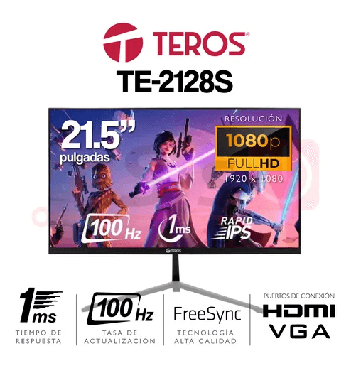 MONITOR TEROS TE-2128S 21.5 Pulgadas PLANO IPS FHD 1920 X 1080 100HZ