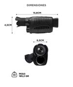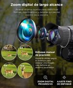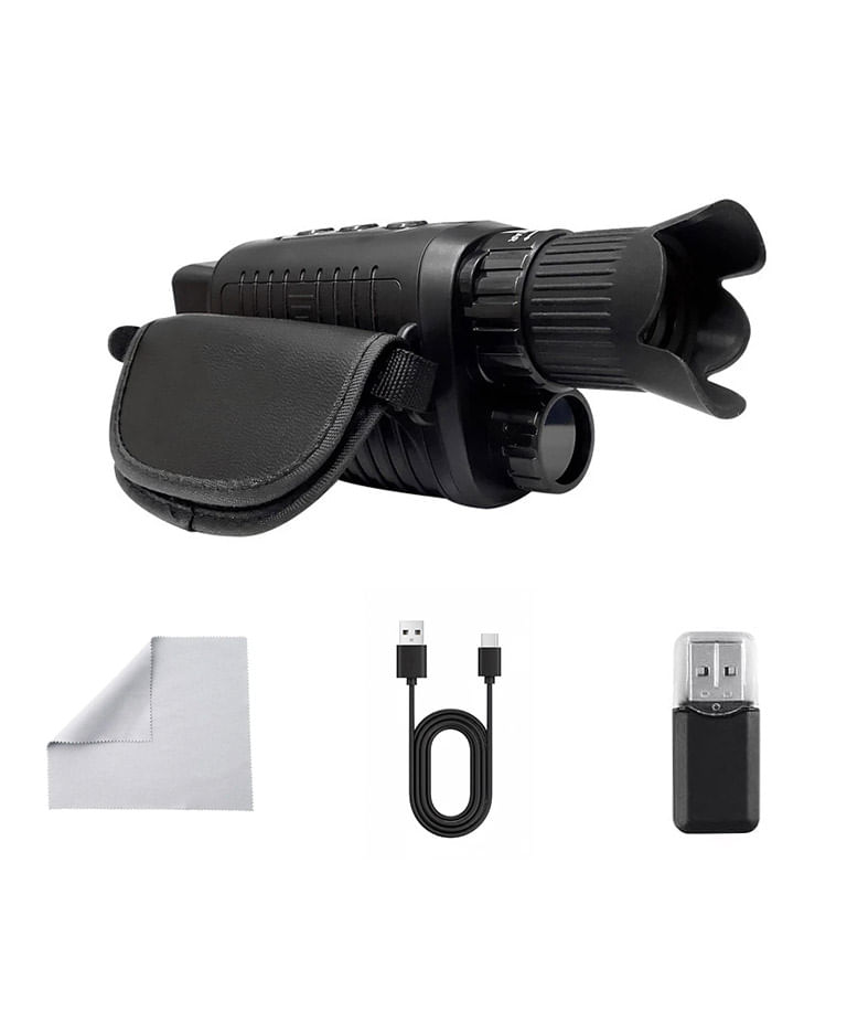 Este monocular permite observar y grabar imagenes en completa oscuridad gracias a su sistema infrarrojo integrado. El ajuste de intensidad IR mejora la visibilidad segun la distancia y condiciones del entorno