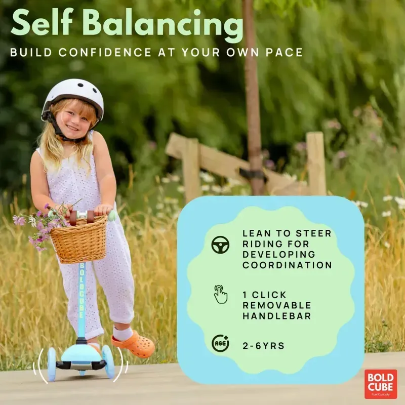 El monopatín de 3 Ruedas Teeny para niños de 2 a 5 años es perfecto para que tu hijo o hija comience a andar. Está diseñado con un sistema de dirección por inclinación de peso, lo que permite que el infante desarrolle confianza de manera gradual y segura: solo necesita inclinarse a la derecha o a la izquierda para cambiar de dirección. Haciendo que su uso sea accesible para todos