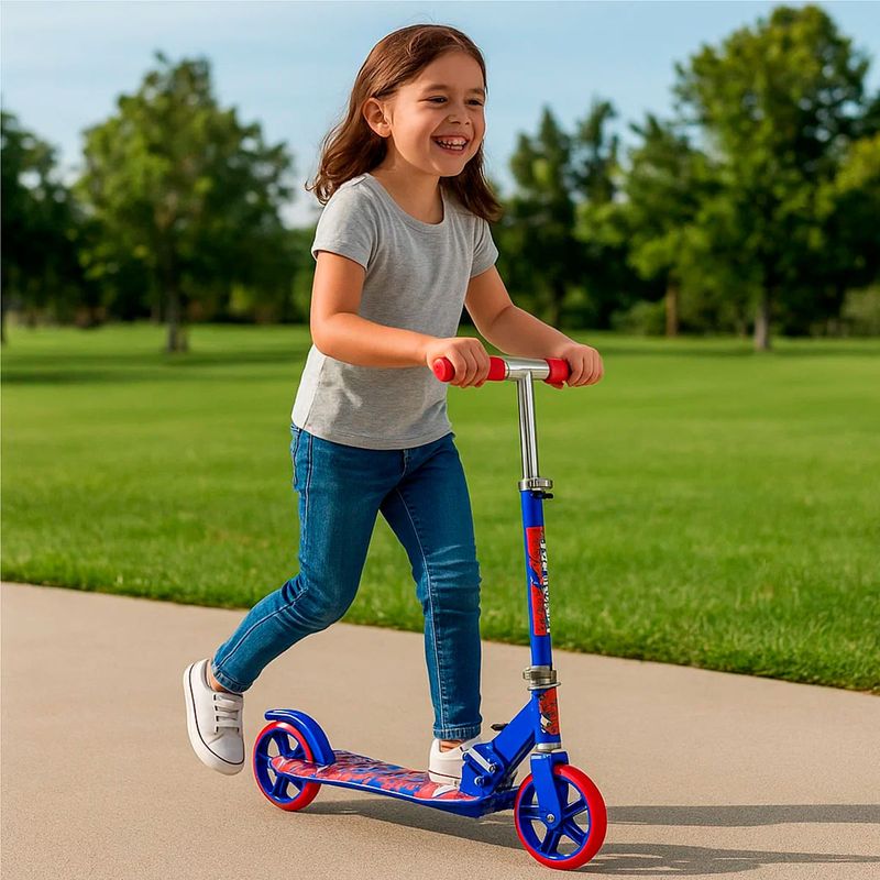 Monopatín Plegable Aluminio De Spiderman Base Azul Manubrio RojoVelocidad y diversión en un diseño ligero y resistenteEl