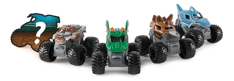 Este increíble set incluye 5 mini vehículos inspirados en los camiones más famosos del show Monster Jam.