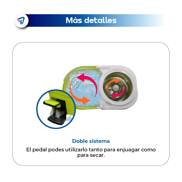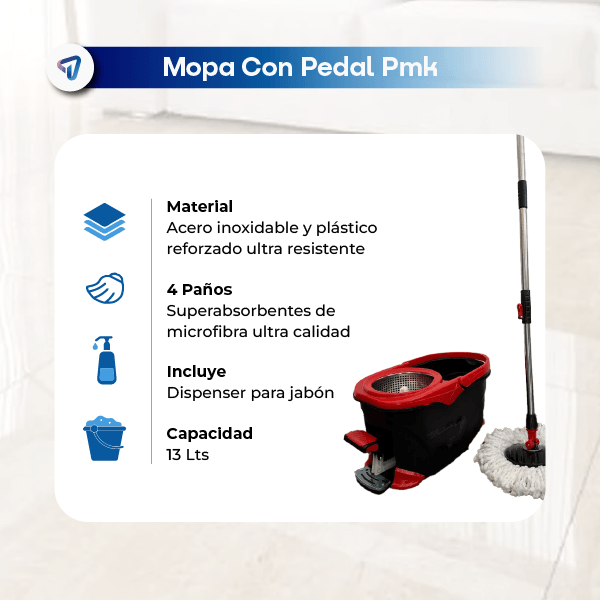 El Balde Trapeador Waggs PMK-001 con Pedal es perfecto para una limpieza eficiente y sin esfuerzo. Este set incluye un cubo con sistema de escurrido por centrifugado que se activa fácilmente mediante un pedal, junto con una mopa de microfibra y poliamida que captura hasta un 20% más de partículas. Es adecuado para todo tipo de superficies, incluso suelos delicados como parquet y laminados. Entre sus características destacan su doble sistema de lavado y secado, mopas de alta absorción, un balde de plástico reforzado para mayor durabilidad y un dispensador integrado que facilita la aplicación de productos de limpieza. El set incluye un palo telescópico y 4 mopas de microfibra para un rendimiento óptimo.