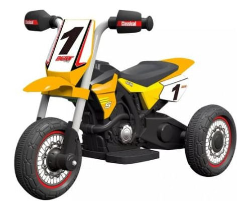 Moto a Bateria CM-SHJ53388 MOTO ENDURO 6V GVC-5478. Motor de 6V. Luces delanteras. Sonidos. Ruedas de seguridad. Edad recomendada +36 - 98 meses. 1 batería 6V - 4 Ah. 1 motor de 15 W. Función inversa. Dimensiones: 71 x 45 x 51 cm.