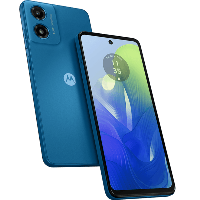 El Moto G04s presenta un diseño delgado, liviano y elegante, fabricado con materiales de alta calidad y una cubierta de cámara que proporciona una sensación agradable al tacto. Su parte posterior tiene un acabado mate sofisticado, y la pantalla está protegida por Corning® Gorilla® Glass 3. Está disponible en cuatro colores.