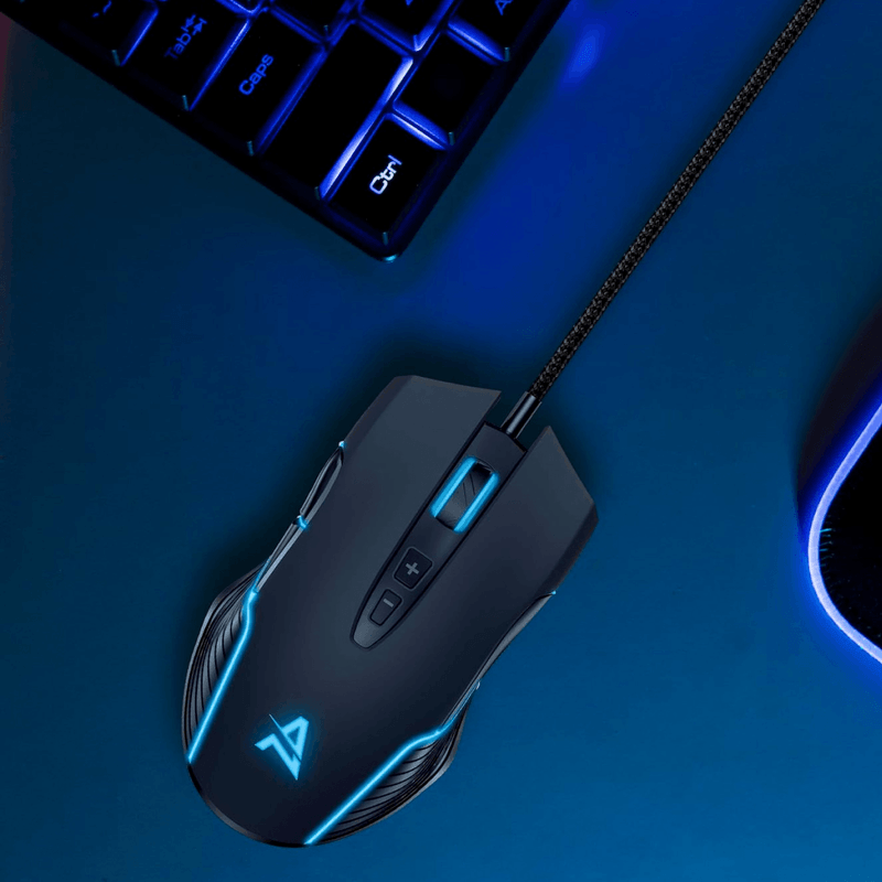 Iluminación azul claro: Nuestro color LED azul claro registrado le proporcionará un entorno de juego perfecto que resaltará su ambiente de juego. Este juego especial de mouse con cable negro te dará una personalización total para tu computadora o computadora portátil.