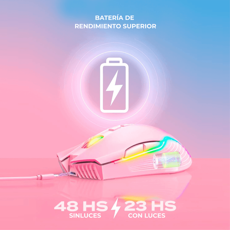 - Práctica recarga USB: Manténgase alimentado con la comodidad de la capacidad de recarga USB. Recarga fácilmente tu mouse inalámbrico para juegos con su cable USB mientras continúas usándolo, asegurando un juego ininterrumpido cuando quieras.