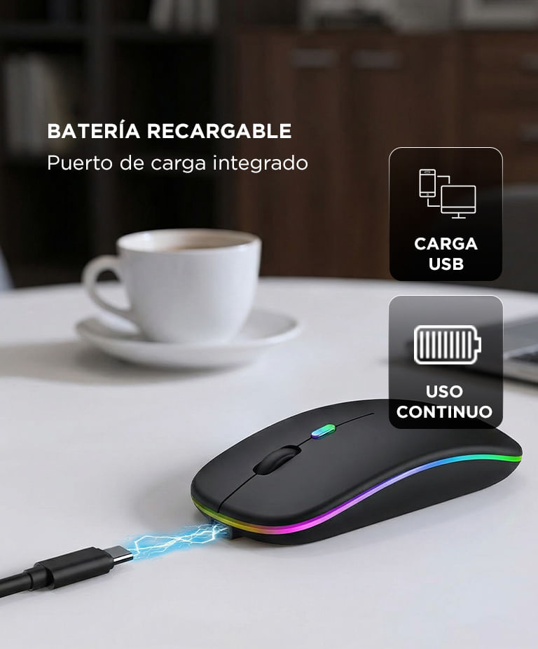 Trabajá de forma inalámbrica y movete libremente sin ninguna interrupción. Al no haber cables, tu escritorio se mantiene despejado. Y además, podés llevar tu mouse fácilmente de un espacio de trabajo a otro.