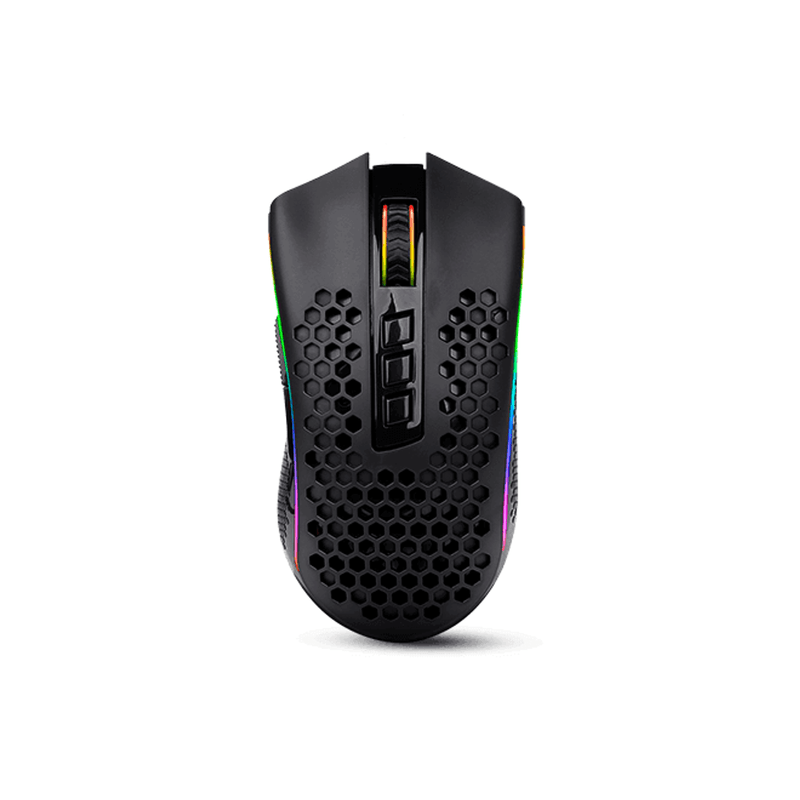 El M808-KS Redragon Storm Pro es un mouse gamer inalámbrico de doble modo (2.4GHz y cableado USB-C), ultraligero (diseño de panal), con sensor óptico Pixart 3335 de hasta 16000 DPI, 8 botones programables, retroiluminación RGB Chroma y batería duradera, ideal para jugadores que buscan alta precisión, personalización y libertad sin sacrificar rendimiento.