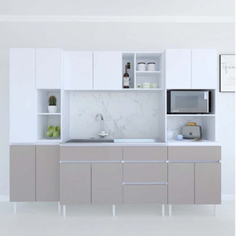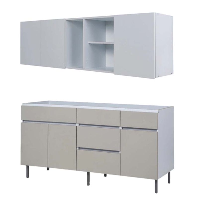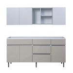 Este combo de alacena y bajomesada de la línea Livorno es la opción perfecta para darle un toque moderno y funcional a tu cocina. Con un diseño elegante en colores Blanco Norte y Beige Avellana, se adapta a cualquier estilo de decoración.