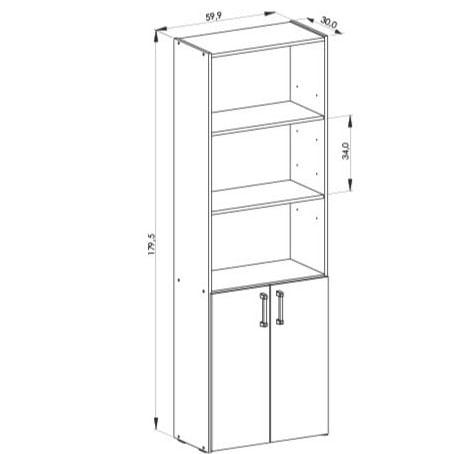 MUEBLE BIBLIOTECA MESINA 5 ESPACIOS CON 2 PUERTAS