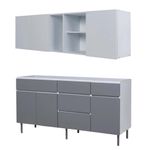 Este combo de alacena y bajomesada de la línea Livorno es la opción perfecta para darle un toque moderno y funcional a tu cocina. Con un diseño elegante en colores Blanco Norte y Gris Polar, se adapta a cualquier estilo de decoración.