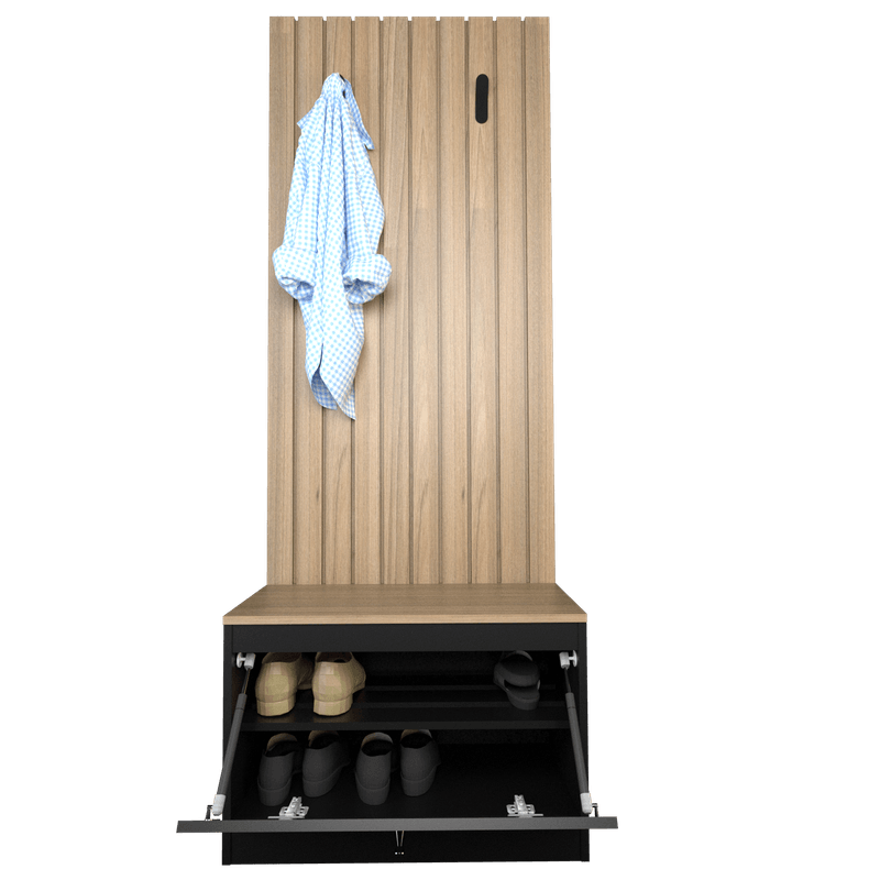 - Perchero metálico y doble pistón en zapatero.