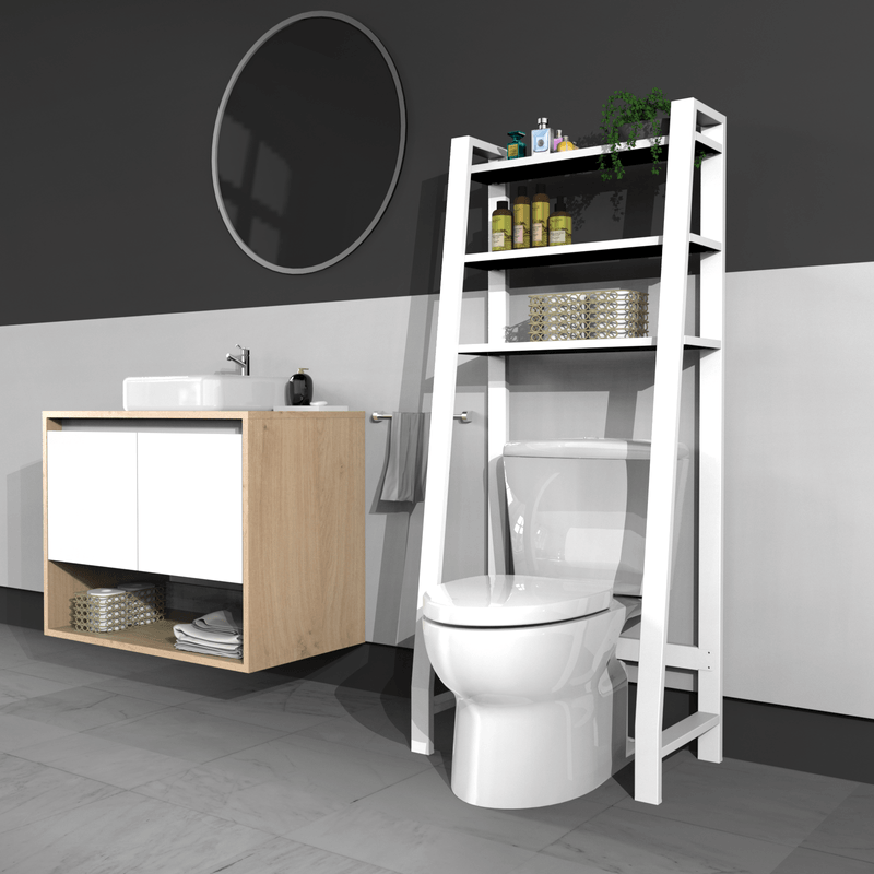 Aprovecha el espacio de tu baño con la estanteria escalera sobre inodoro. Diseño moderno, amplia capacidad y combinación perfecta de madera y metal.