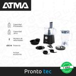 La Multiprocesadora Atma, la solución perfecta para tus necesidades de cocina. Esta multiprocesadora incluye una cuchilla de acero inoxidable, amasador, rebanador, rallador, procesador de verduras, exprimidor y emulsionador, lo que la hace muy versátil y capaz de realizar múltiples tareas.