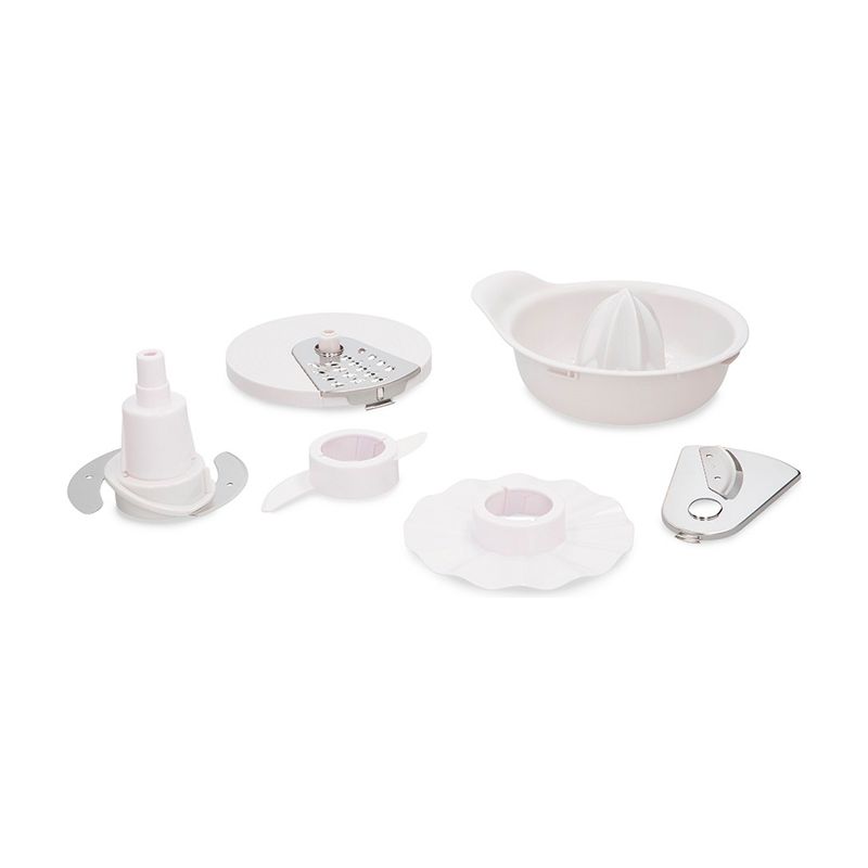- Cuchilla intercambiables: Acero inoxidable, amasador, rebanador, rallador, procesador de verduras, exprimidor