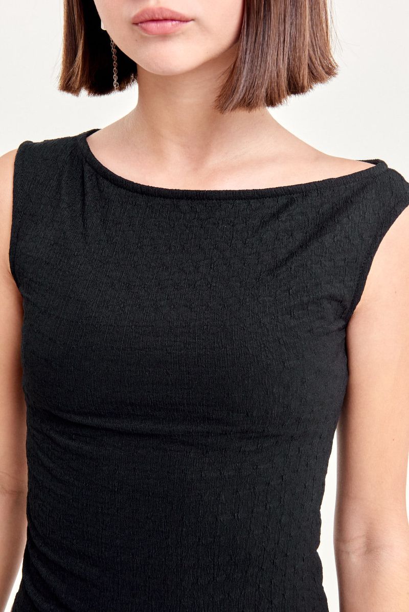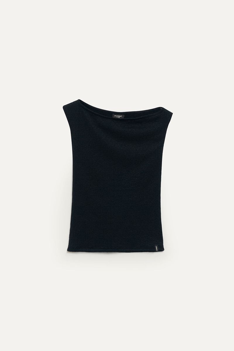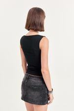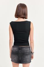 Musculosa de algodón con escote irregular y silueta recta de largo hasta la cadera. Es una prenda básica pero con personalidad. Podés usarla con pantalones sastreros o minis de cuero para contrastar texturas.