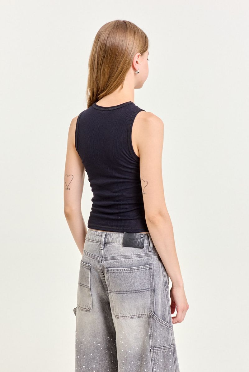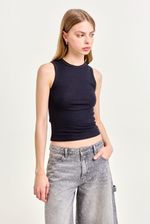 Musculosa de morley viscosa lisa, largo a la cintura y costuras con bordador a tono.