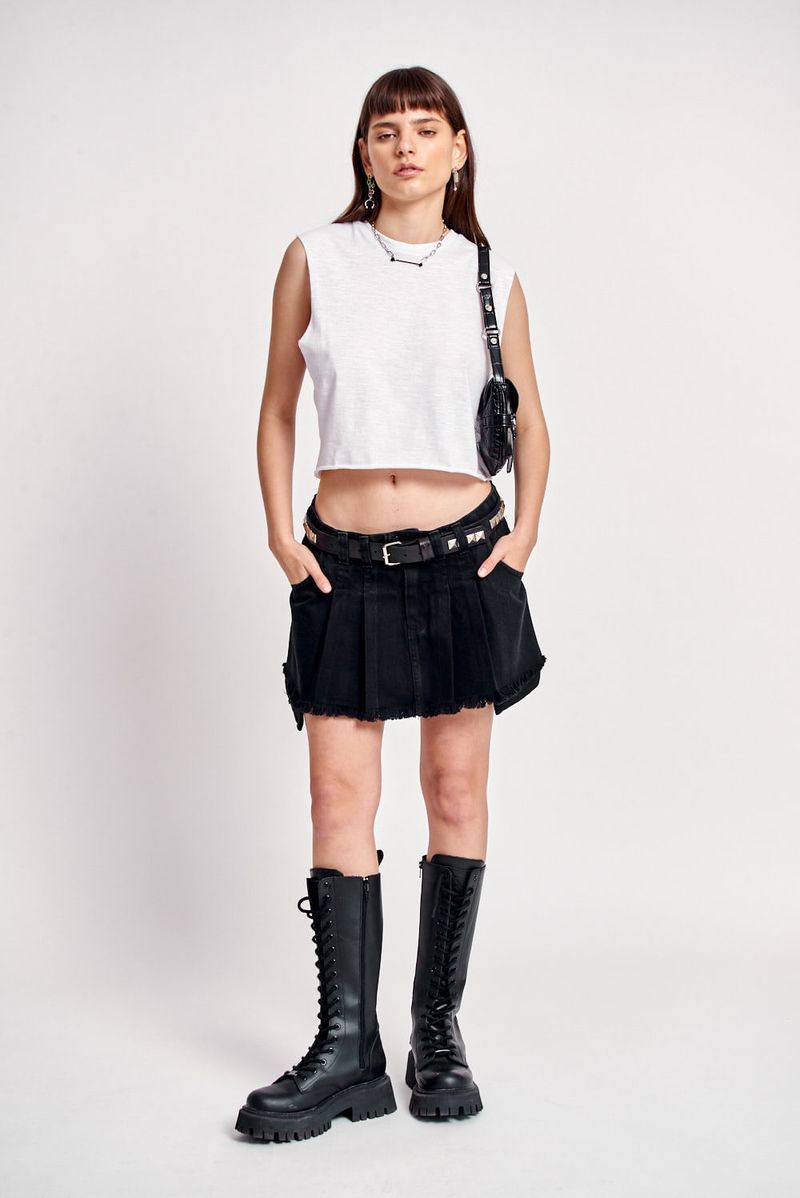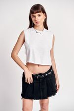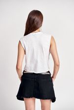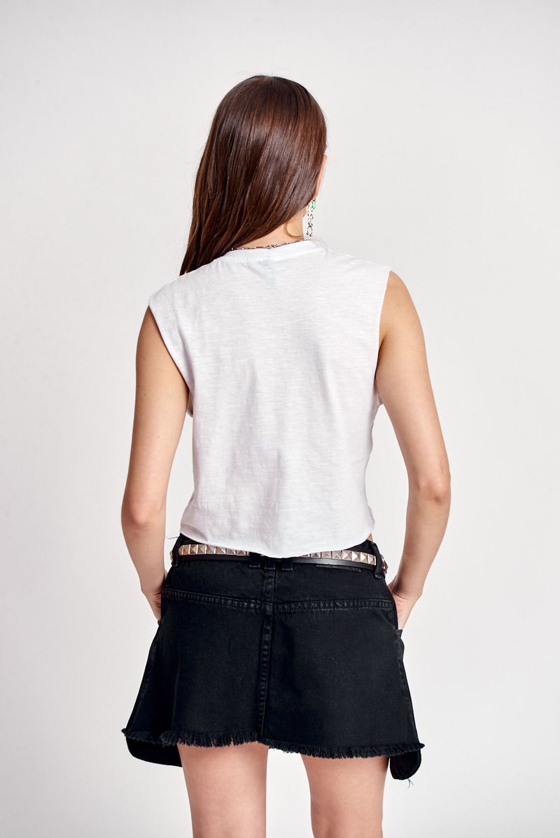 Musculosa basica de jersey. Sisas al corte. Cuello redondo aplicado. Largo por debajo de la cintura. Molderia acampanada. Grifa institucional en ruedo izquierdo.
